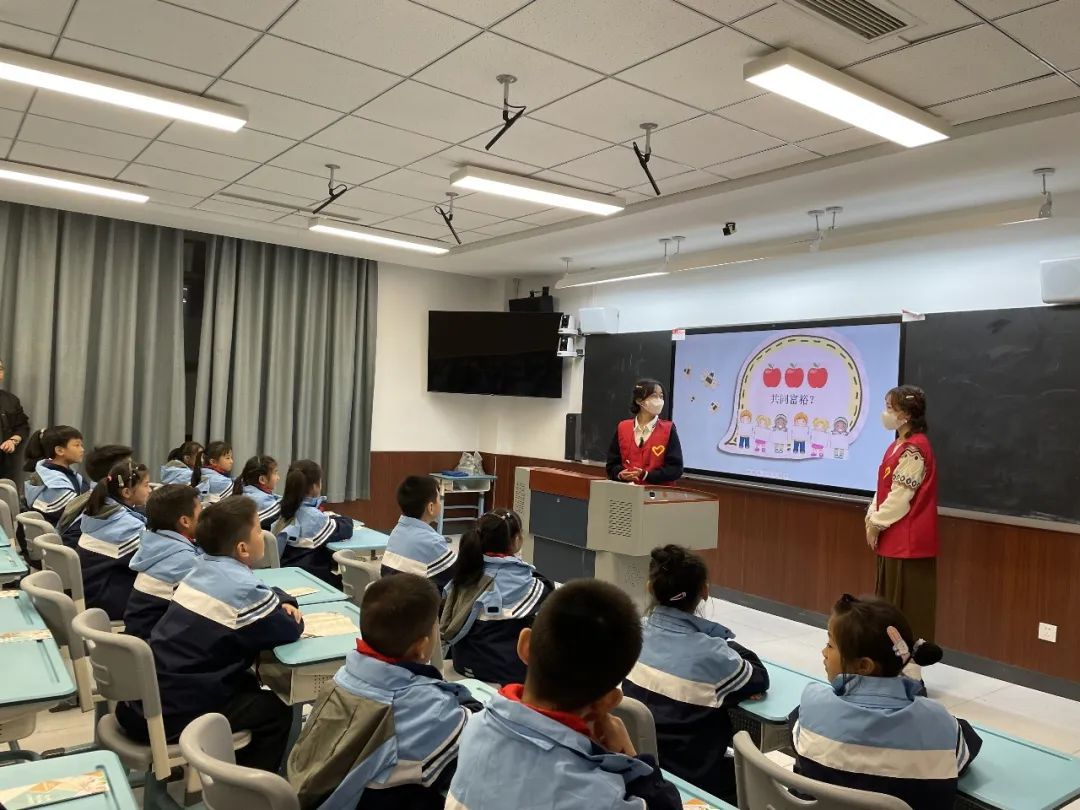 活动伊始,浙江财经大学金融学院学生会宣讲员李一棵、卢瑞云通过视频向孩子们呈现了我国近几年脱贫攻坚工作开展的重大成果,同时,从“分苹果”这样一个简单有趣的小游戏引入“共同富裕”的概念,帮助学生了解中国共产党如何带领全国各族人民实现共同富裕的伟大历程。