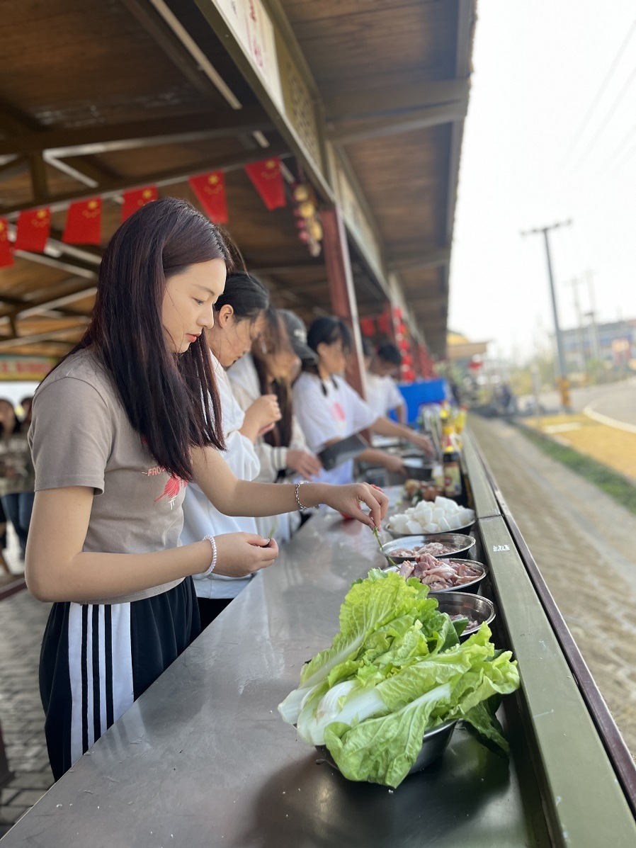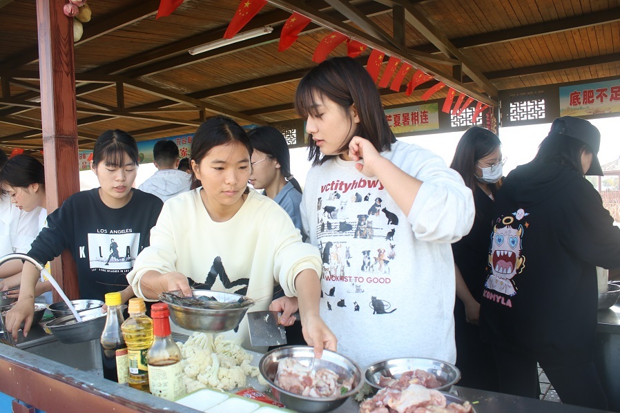 当天,马克思主义学院还组织了稻子收割、神奇扳网、农事运动会、厨王争霸赛、田间写生等活动。活动中,同学们走进稻田,左手抓稻,右手挥镰,闻着稻香,在金黄色的稻田里,用最传统的方式收获丰收的果实,感受农耕生活的辛苦和乐趣。在紧张激烈的厨王争霸赛中,同学们迅速分工,有的生火、有的洗锅、有的切菜,忙得不亦乐乎。经过一番蒸、煮、炒、煎、炸的有序操作后,番茄炒蛋、花菜肉片、排骨萝卜汤等家常菜,一一地呈现在餐桌上。在神奇扳网和农事运动会,同学们学会了利用竹子、细网制作农家工具的最原始捕鱼方法,懂得了农事运粮的相关经验和技巧。艺术专业学生则在田间开展“稻田写生,体验秋收”活动,用画笔记录下热火朝天的劳动场面和风光秀美的乡村画卷,用镜头捕捉实践活动中的精彩瞬间。思政教师也积极参与其中,与学生热情互动,现场气氛活跃。