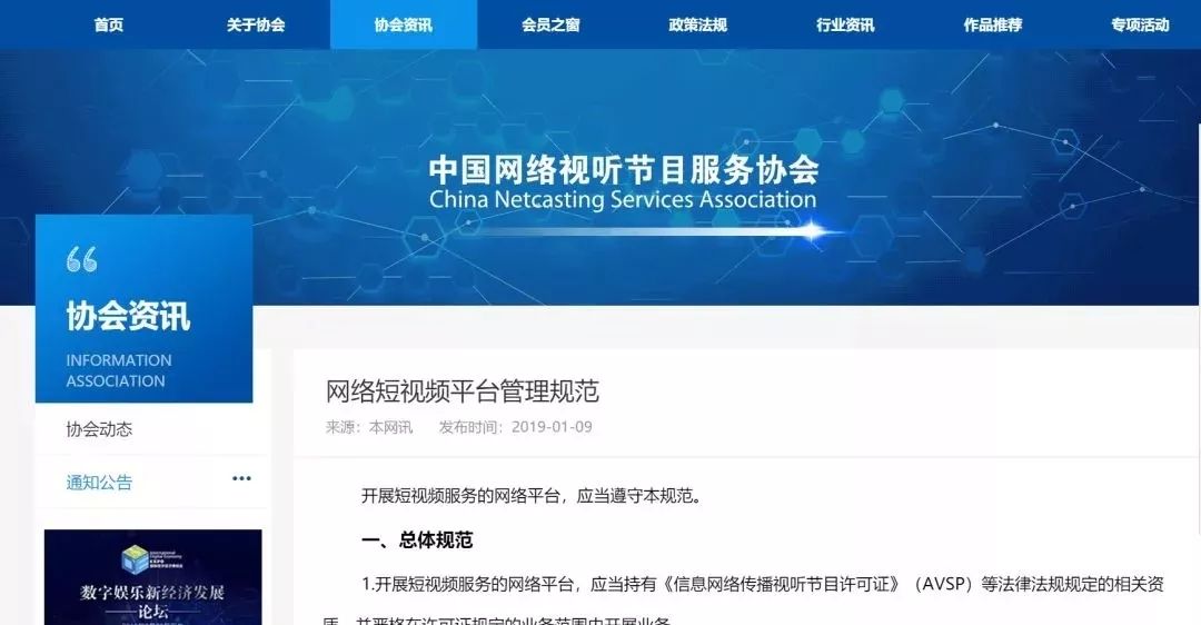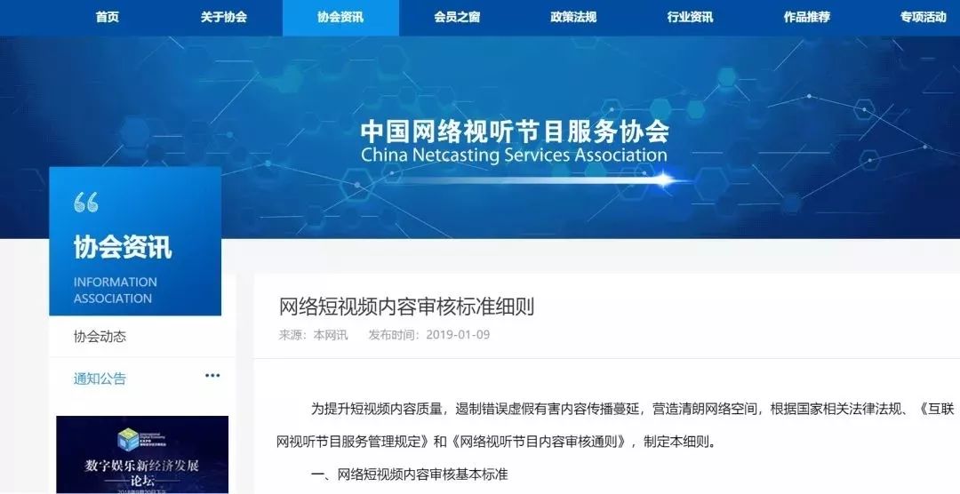 1月9日,中国网络视听节目服务协会的官网上发布了《网络短视频平台管理规范》和《网络短视频内容审核标准细则》,进一步规范短视频传播秩序。