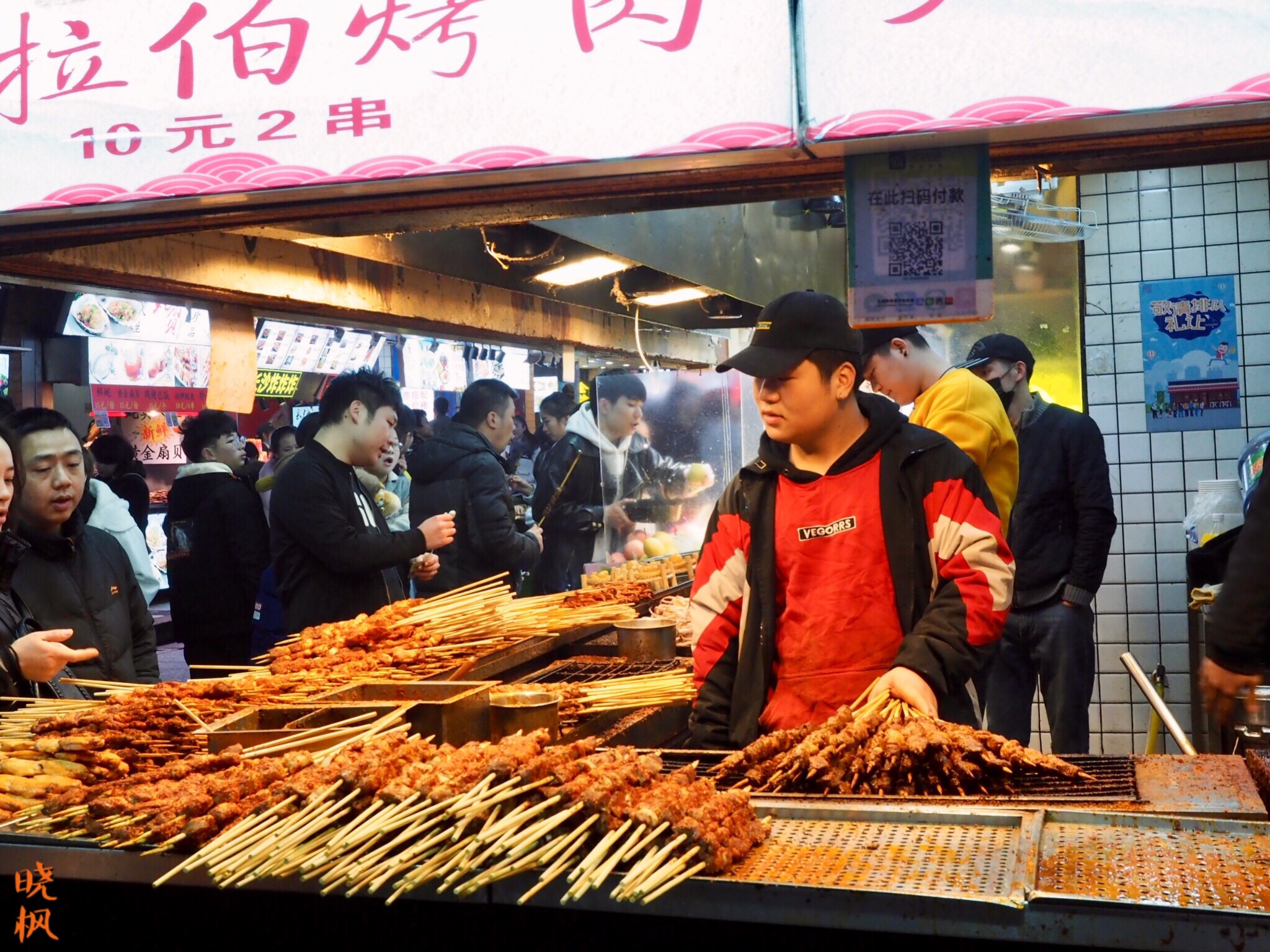 街口的烤肉店围满了游客
