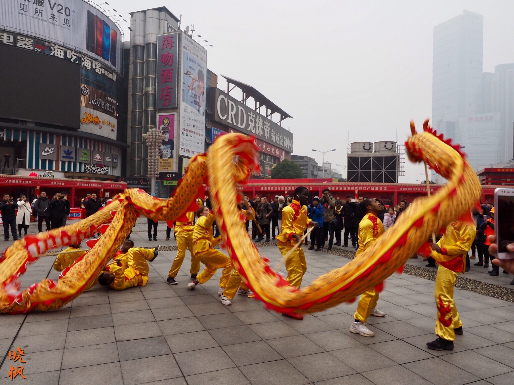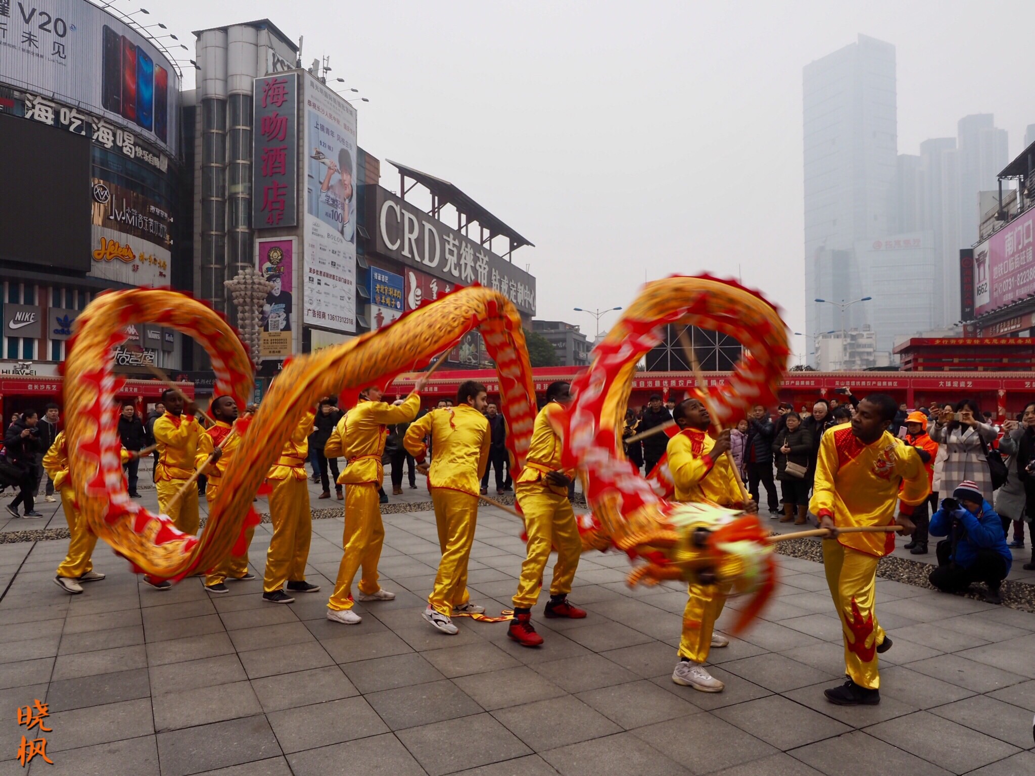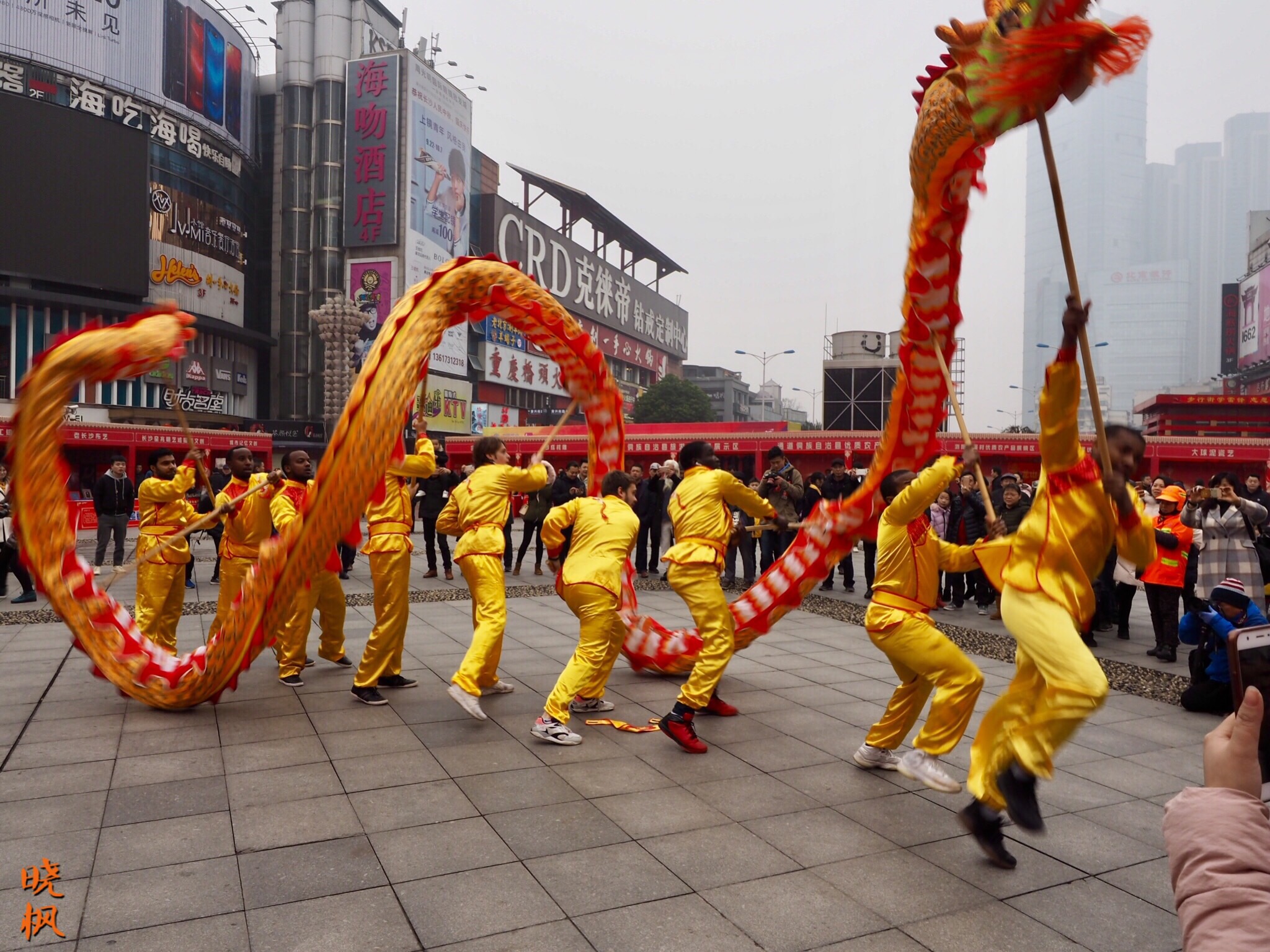 长沙火宫殿庙会,老外们舞龙庆祝中国春节
