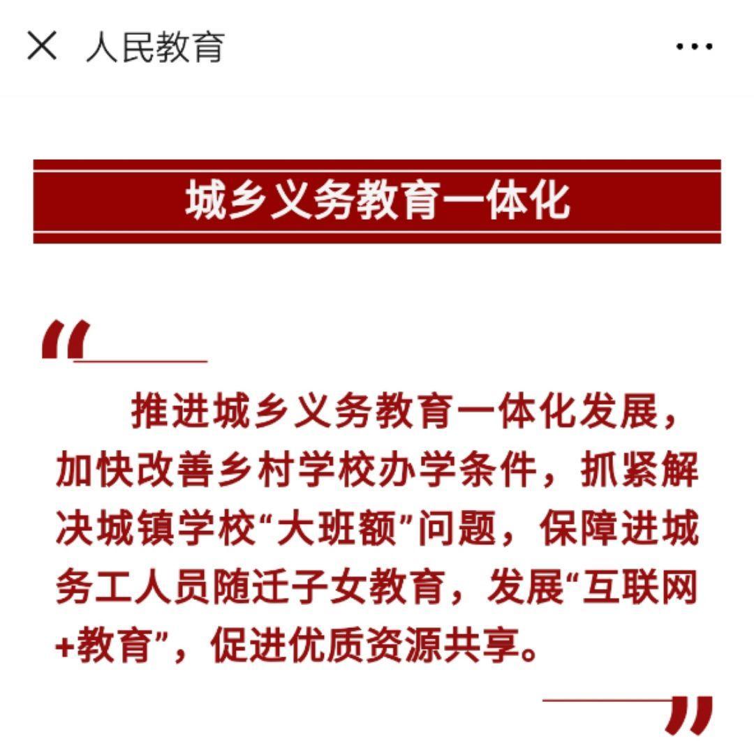 3月5日上午9:00,十三届全国人大二次会议在人民大会堂开幕,国务院总理李克强作政府工作报告时,划出2019年教育改革发展的重点,指出要推进城乡义务教育一体化发展,加快改善乡村学校办学条件,抓紧解决城镇学校“大班额”问题,保障进城务工人员随迁子女教育,发展“互联网+教育”,促进优质资源共享。