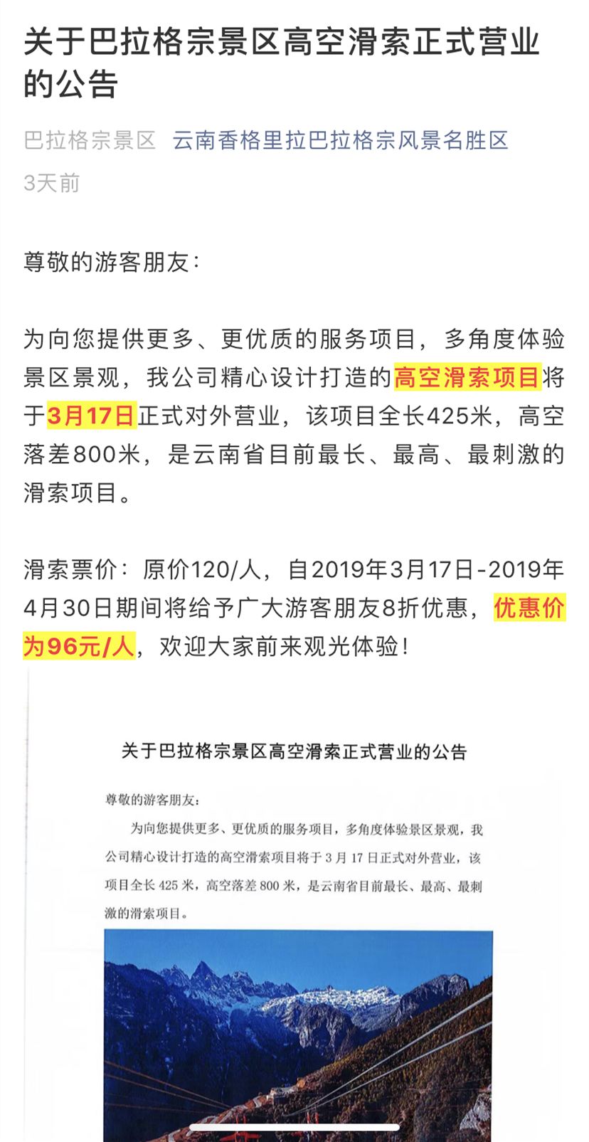 @云南香格里拉巴拉格宗风景名胜区微信公众号