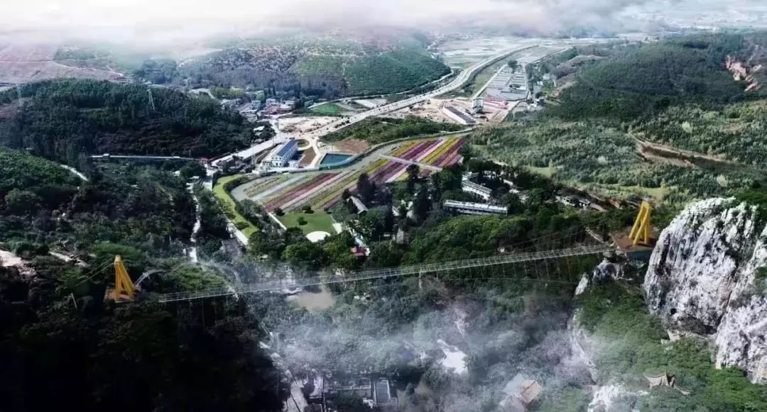 记者从项目负责人处了解到,玻璃吊桥占地2760平方米,采用最新的9D特效玻璃建造,整座吊桥横跨在南洞公园上空,同时,公园还将配套建设绣球花基地和下山滑道,给游客更多好玩有趣的游玩体验。