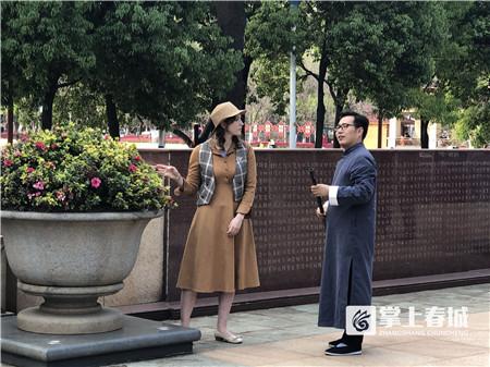掌上春城讯 3月28日下午,昆明本土精品庭院剧《联大往事》快闪活动在翠湖宾馆举行,该剧主创人员以剧中形象齐聚翠湖之滨,现场重现了剧中部分精彩片段,吸引了广大市民围观。