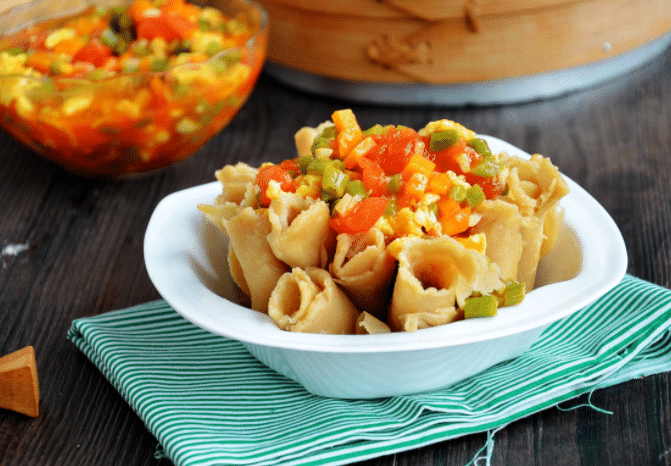 在陕西,面的种类就比较少了。手擀面、刀切面,还有著名的潼关肉夹馍!但是并不是陕西的面食种类少就没什么花样了,他们的面食照样是花样百出。