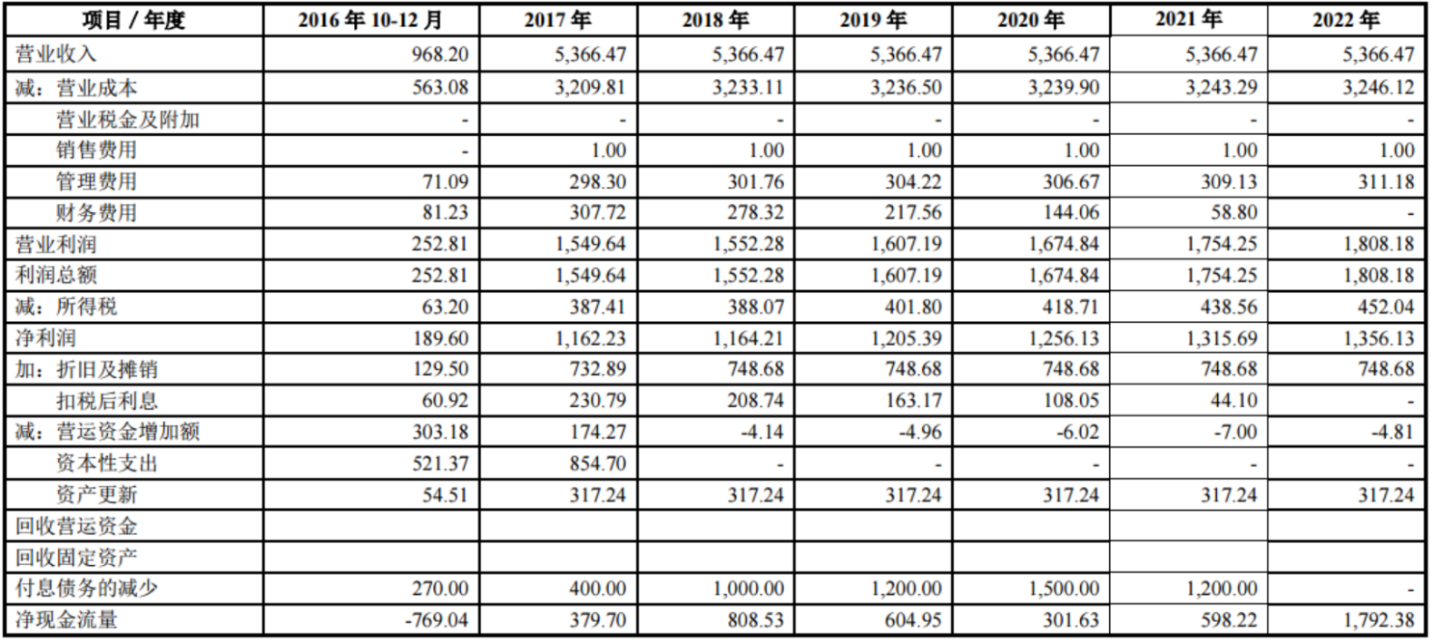 表:洛阳景安未来净现金流估算表(单位:元)