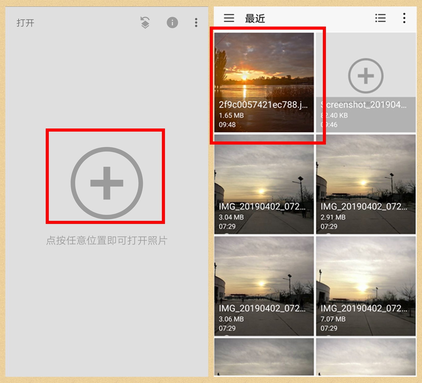 第一步:打开snapseed,点击“十”号,从相册里选择照片。