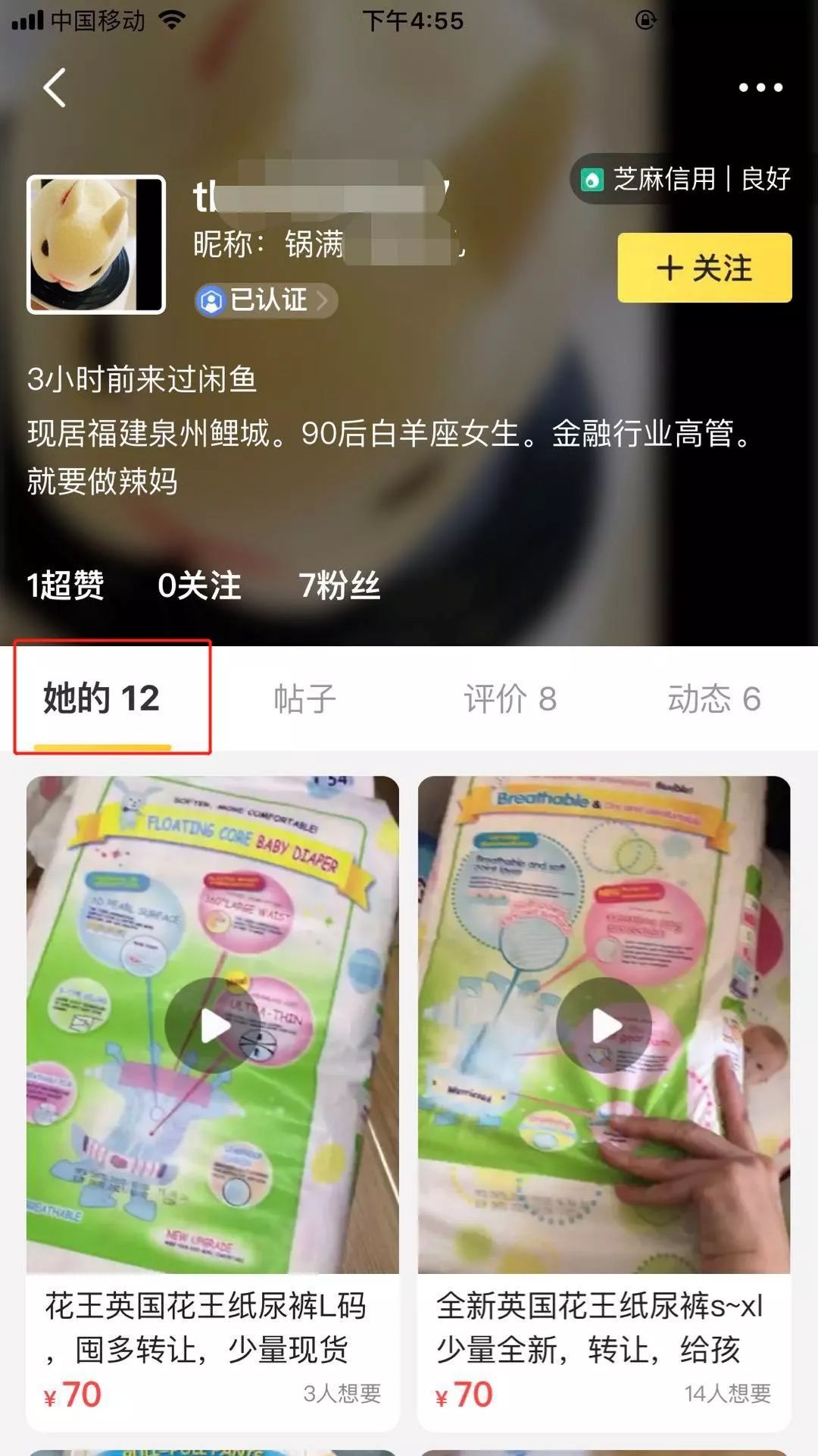 对于卖家这样的说法,黄先生并不赞同:“他的闲鱼账号里一共有12个‘英国花王’婴儿拉拉裤的购买链接,各种尺寸都有,我认为她是一个职业卖家。”