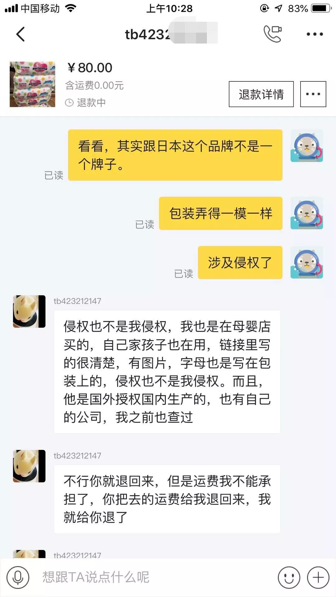一开始,黄先生的退货要求遭到了闲鱼卖家的拒绝。她表示自己是在母婴店购买的,自己在产品链接里写得很清楚,并附上了产品的图片,即便是仿冒产品也不是她仿冒的。多次交涉后,卖家最终同意退货,但要求黄先生承担之前发货的10元运费。