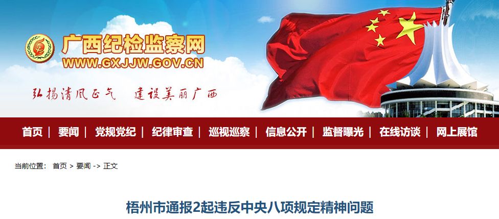 来源|广西纪检监察网、南宁市纪委监委、柳州市纪委监委、梧州市纪委监委、钦州市纪委监委、河池市纪委监委、贵港市纪委监委