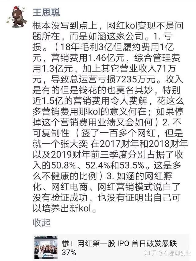 网红的红利期过去,产品质量、后续服务、品牌价值等等问题暴露出来,如涵的结局不难预料。