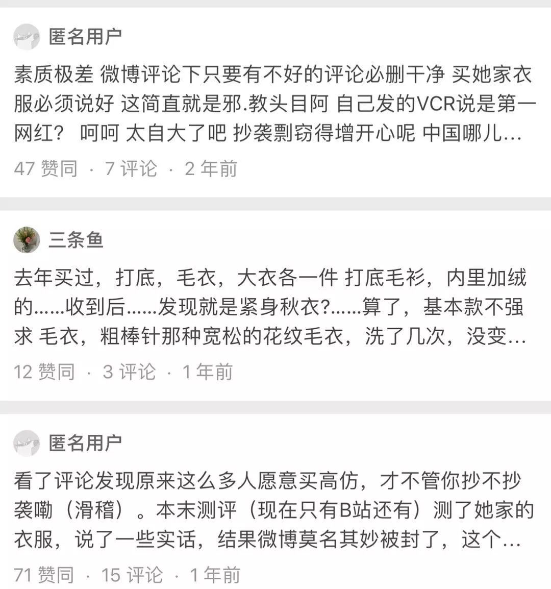 2017年,张大奕被原创者指出设计抄袭时,大言不惭地反击: