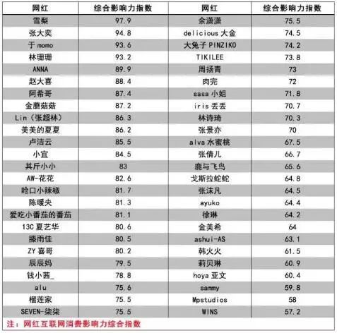 ▲阿里巴巴2017年发布的《网红互联网消费影响力榜单》中,张大奕排名第二,仅次于王思聪的前女友雪梨