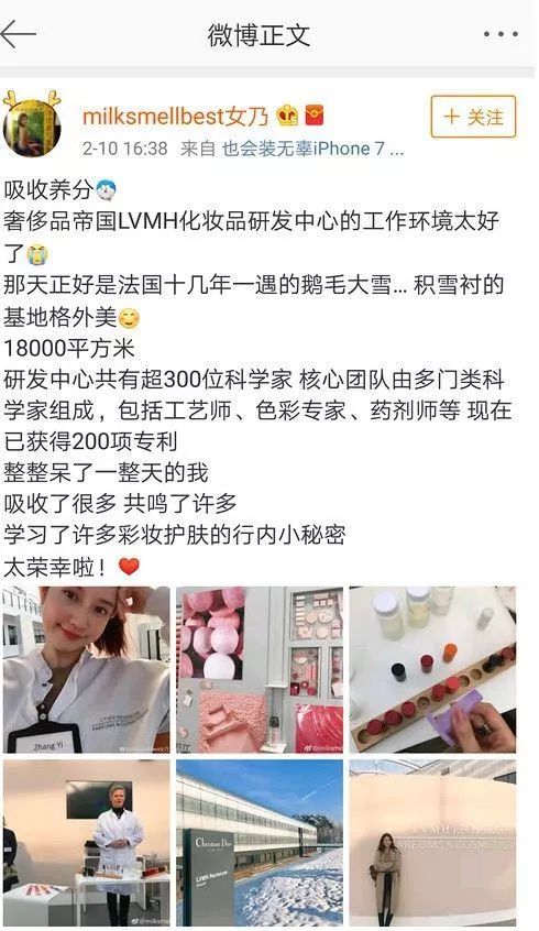 去年,张大奕称自己在LVMH化妆品研发中心待了一整天,学习到了许多行业秘密。