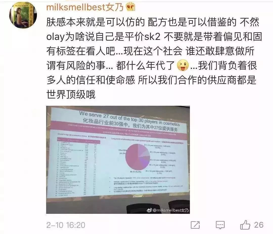 被网友diss后,张大奕发文挽尊:“Olay也自称平价SK-II,我为什么就不能打版cpb?”