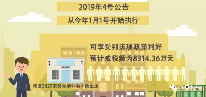 2019年4号公告从今年1月1号开始执行,经初步统计,我区2823家符合条件的小微企业可享受到该项政策利好,预计减税额为8314.36万元 。