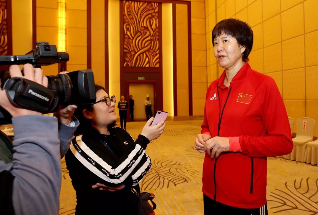 △中国女排总教练郎平和女排队员在漳州宾馆接受闽南日报和漳州新闻网记者的专访。