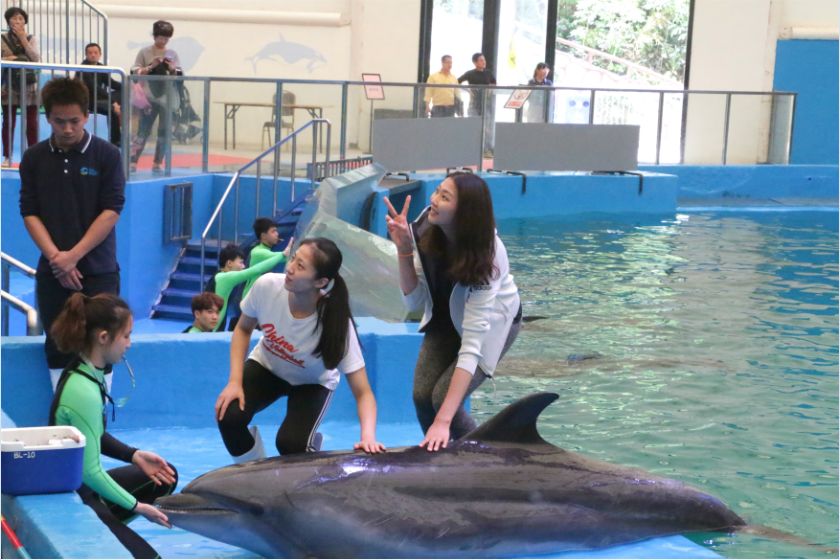 4月18日,在漳州进行封闭式集训的中国女排在主教练郎平的带领下,到长泰县休整、游览。当天,女排姑娘们一行游览天柱山欢乐大世界和龙凤谷小黄山,走吊桥,观赏各种深海鱼类,观看海豚表演。