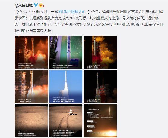 【今天,中国航天日,一起#致敬中国航天#!】今年,嫦娥四号传回世界首张近距离拍摄月背影像图;长征系列运载火箭完成第300次飞行;纯商业模式的捷龙一号火箭将首飞。逐梦航天,我们从未停止脚步。今年还有哪些发射计划?未来又将实现哪些航天梦想?九图带你看↓↓我们的征途是星辰大海!