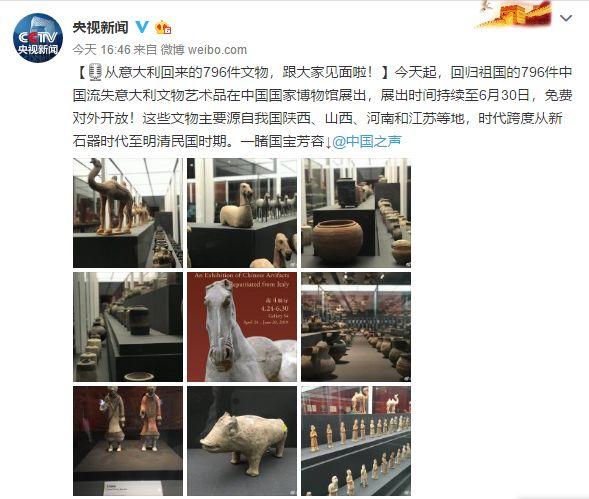 【从意大利回来的796件文物,跟大家见面啦!】今天起,回归祖国的796件中国流失意大利文物艺术品在中国国家博物馆展出,展出时间持续至6月30日,免费对外开放!这些文物主要源自我国陕西、山西、河南和江苏等地,时代跨度从新石器时代至明清民国时期。一睹国宝芳容↓