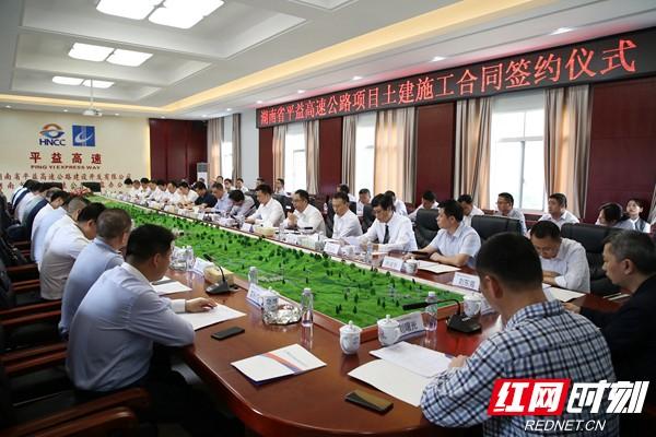 湖南路桥建设集团有限责任公司、湖南建工交通建设有限公司、湖南交通国际经济工程合作有限公司、湖南尚上公路桥梁建设有限公司、湖南省湘筑工程有限公司等中标单位负责人出席签约仪式。