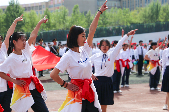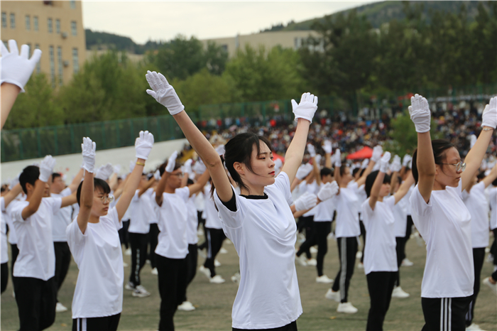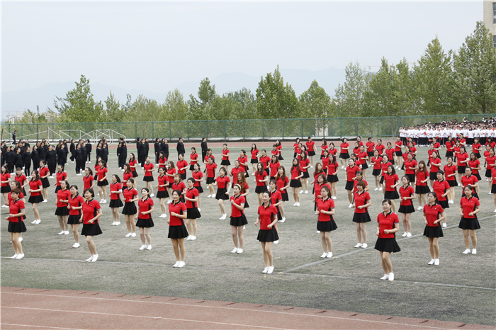 随后,精彩的文艺、体操表演开始。铿锵有力的中国鼓表演,节奏鲜明紧凑,扣人心弦;阵容强大的千人广播体操表演活力四射,充满气势;融传统文化与现代元素于一体的《戏曲课间操》,灵动多元,惊艳全场;学校女教职工带来的健身操《红色娘子军》,将健身操的技巧与舞蹈的表现手法相结合,充分彰显了巾帼不让须眉的靓丽风采;集体舞《青春万万岁》充分展示出学子们活泼、热情的良好精神风貌。最后,万人齐唱《我爱你中国》,唱出了齐鲁理工人的共同心声,激发出齐鲁理工人强烈的爱国情、报国志、强国行。