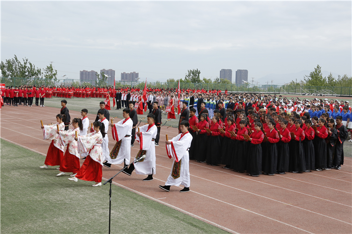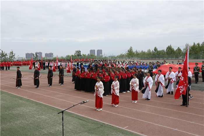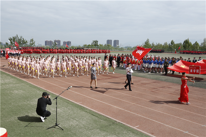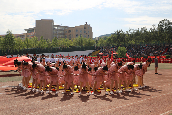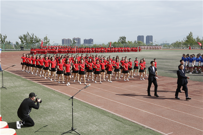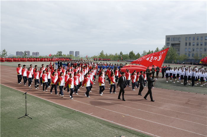副校长赵云生在开幕式致辞中指出,一年一度的田径运动会,是学校全面贯彻落实党的教育方针,努力培养德智体美劳全面发展的社会主义合格接班人的重要举措;也是学校教育教学改革和养成教育成果的一次集中、生动展示;更是全校师生增强团队拼搏意识,磨炼顽强意志品质,展示良好精神风貌的重要契机。希望学校师生在激烈的体育竞技中,增强规则意识,培养合作精神,锤炼意志品质,激发昂扬斗志,学会从容应对学习、工作、生活和未来发展所面临的各种压力和挑战,最终到达人生巅峰。