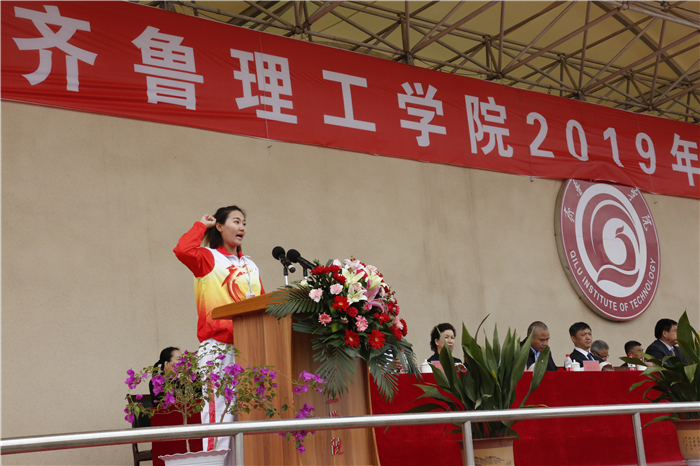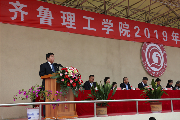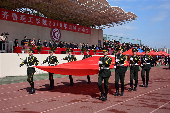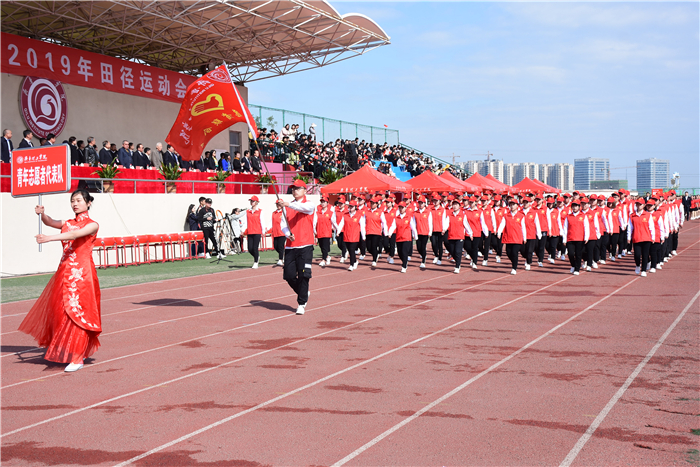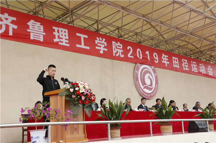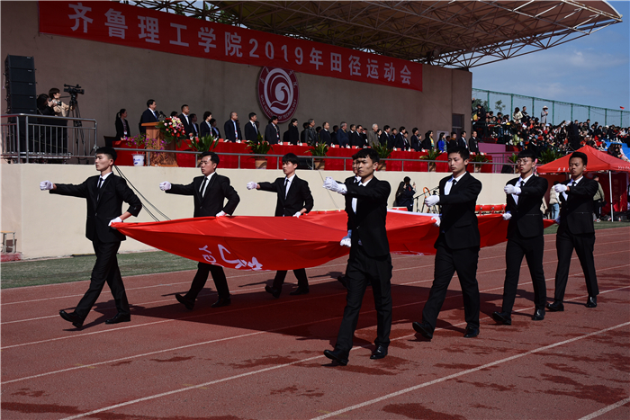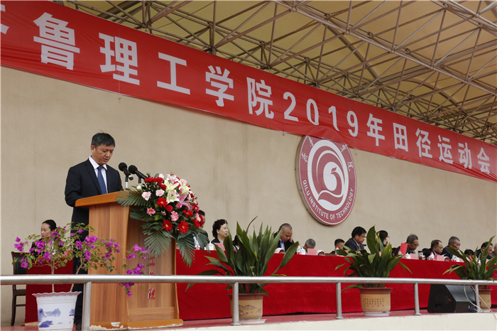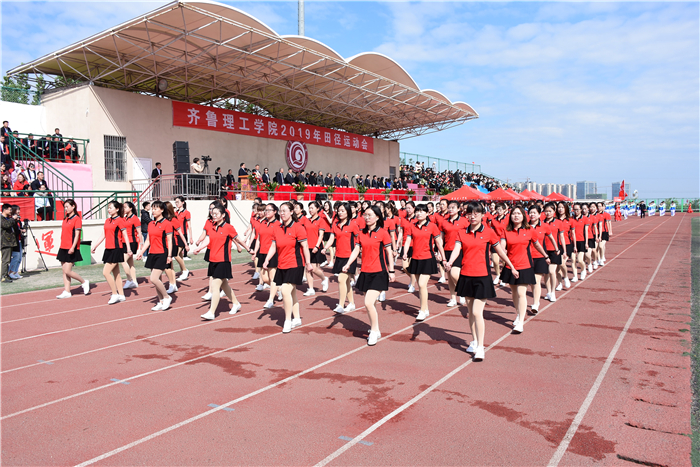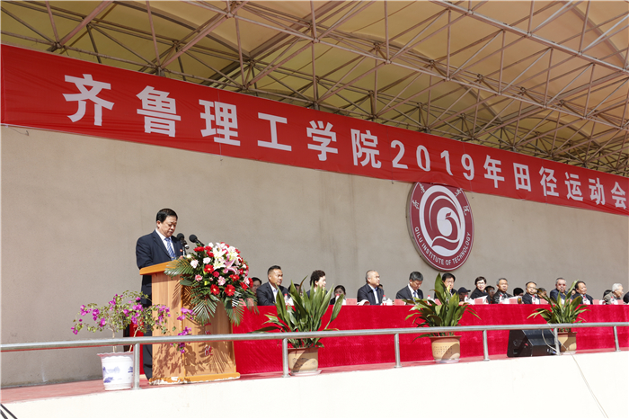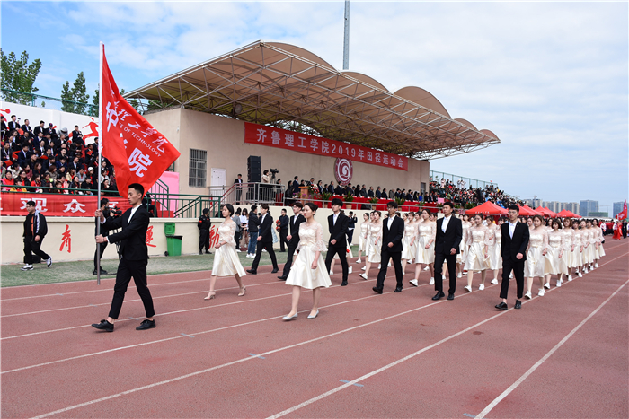 4月26、27日,齐鲁理工学院2019年田径运动会在学校体育场隆重举行。学校领导及各院部、各部门负责人出席开幕式并在主席台就坐。伴着雄壮激昂的《运动员进行曲》,各代表队迈着整齐的步伐,喊着嘹亮的口号,精神抖擞、意气风发地依次步入会场,接受检阅。开幕式由副校长陈月吉主持,学校党委书记向来生宣布开幕,副校长赵云生致开幕辞。