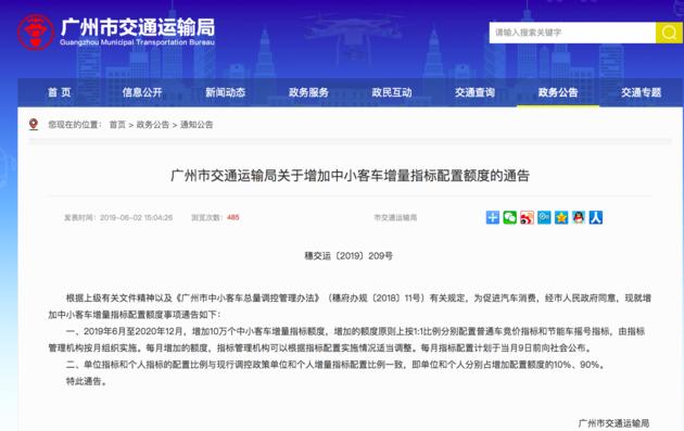 不到一周时间,广州市就发布了增加10万个中小客车指标的通告,同天深圳也宣布增加4万个中小客车指标。