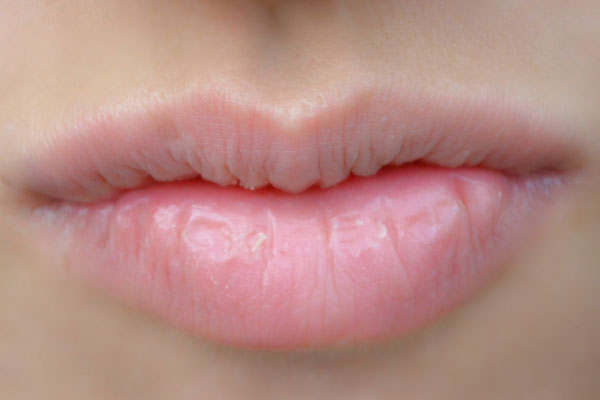 长期缺乏B族维生素,嘴唇干裂破皮。