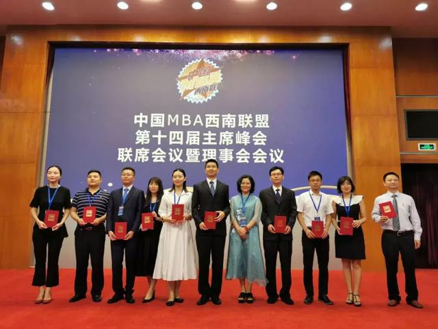 五湖四海,群贤毕至,全体参会代表在经济与管理学院楼楼前广场合影留念。随后在西南联盟秘书长成晓薇女士的主持下,举行了中国MBA西南联盟联席会议暨理事会会议,会议通过了8位退任主席的副理事长申请,投票增选了5位副理事长并颁发聘书。