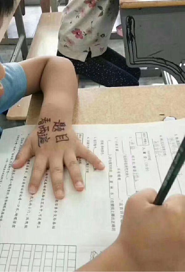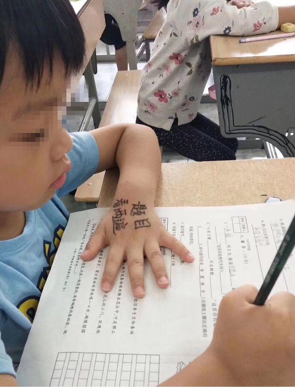 古有岳母在儿子后背刺字——“精忠报国”,今有芜湖家长在孩子手背上写字——“题目看两遍”!都是“可怜天下父母心”啊!