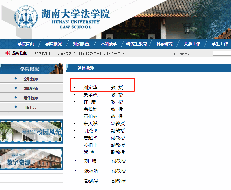 湖南大学法学院官网截图