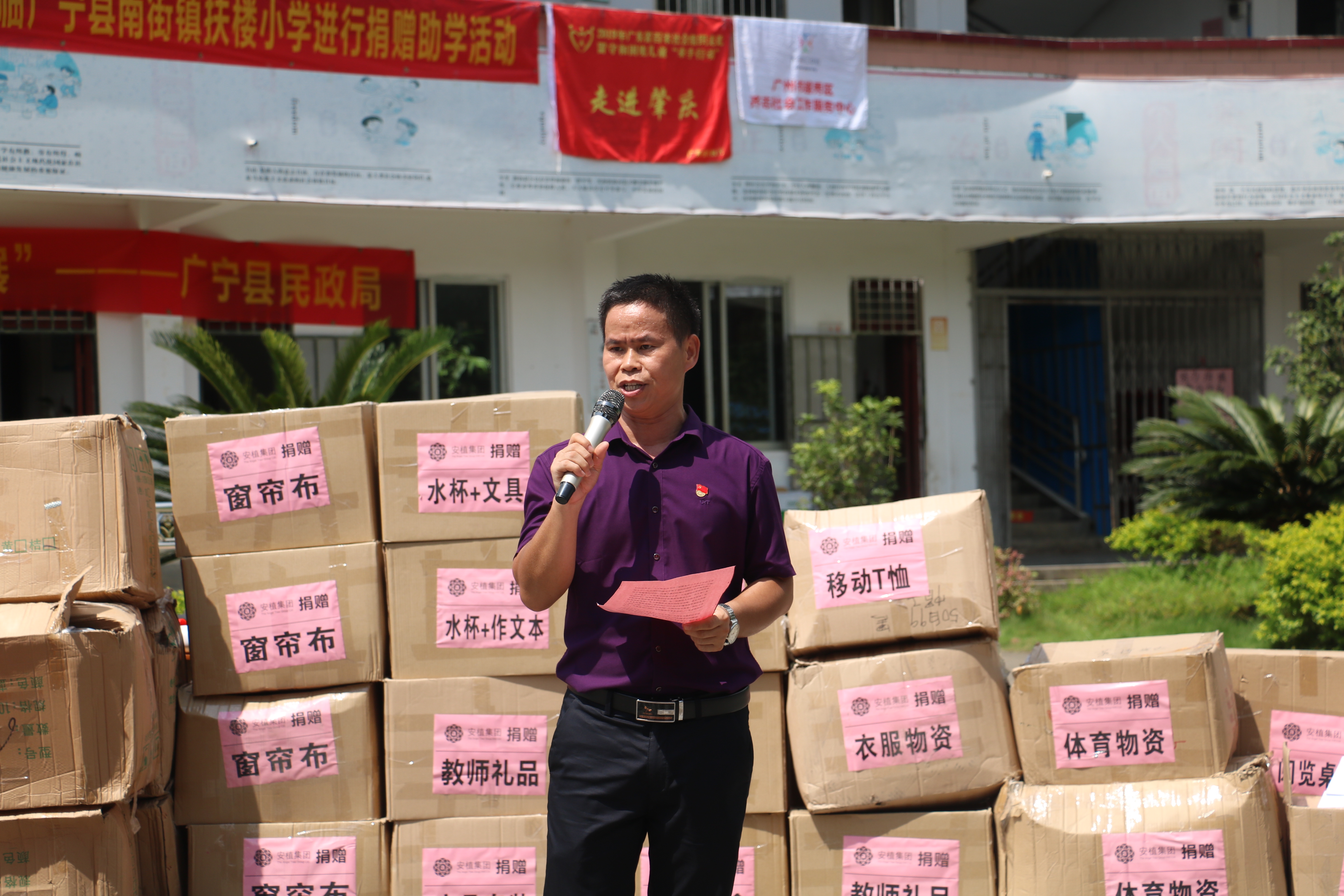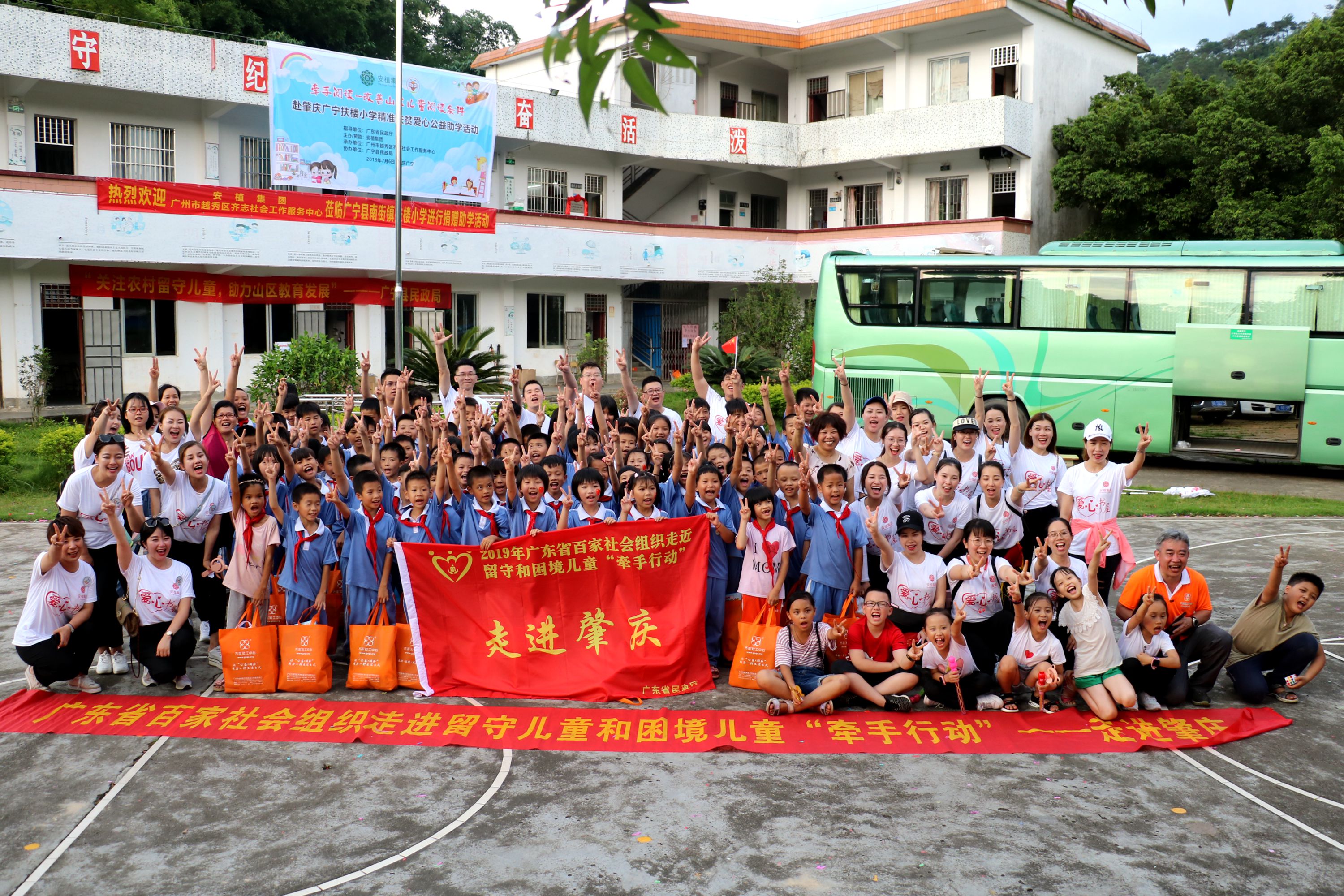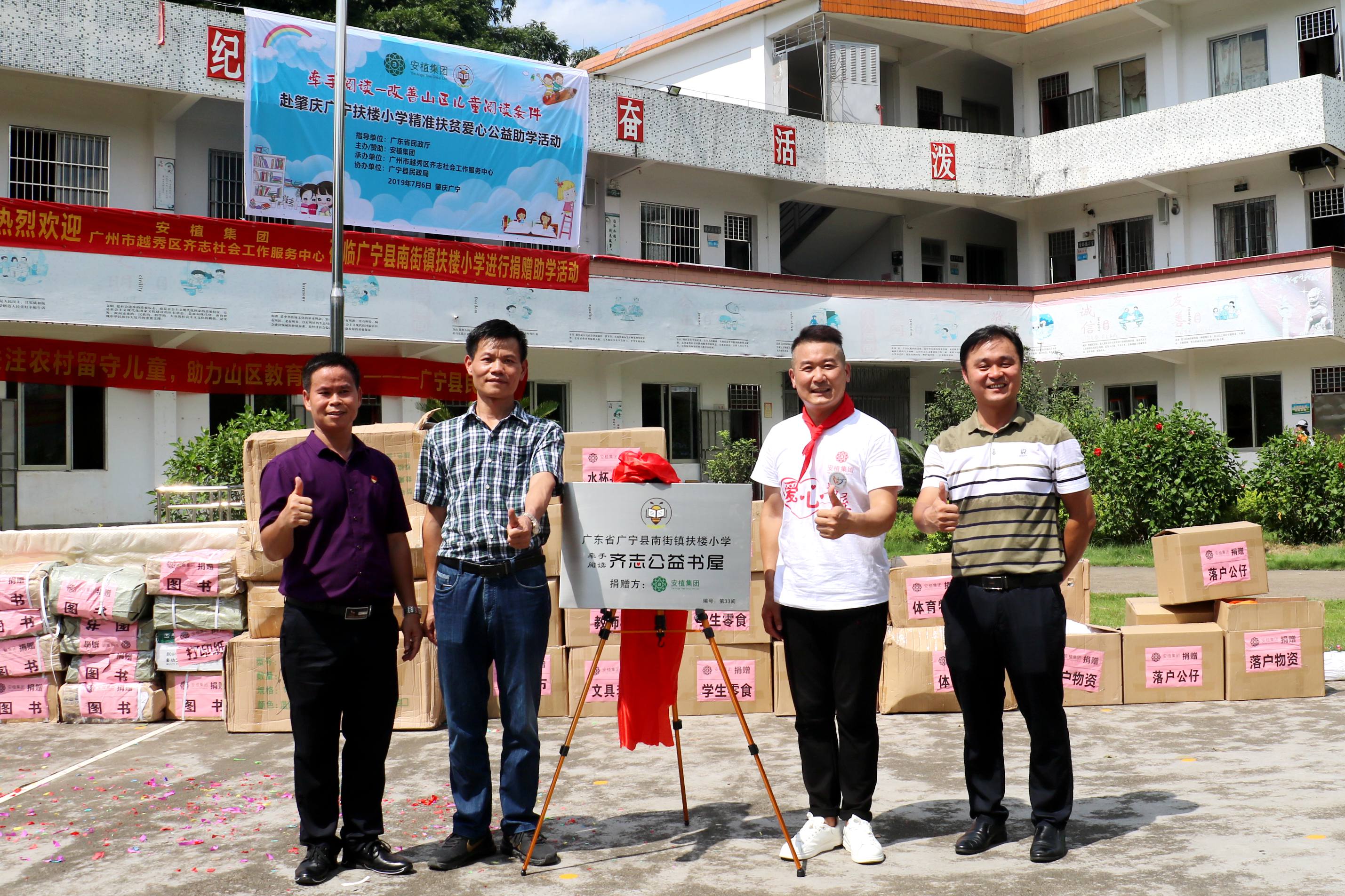 2019年7月6日,为关注农村留守儿童,助力贫困山区教育发展,安植集团携手广州市越秀区齐志社会工作服务中心前往肇庆广宁,共同举办“牵手阅读-改善山区儿童阅读条件”赴广宁扶楼小学精准扶贫爱心公益助学活动。本次活动由省民政厅指导,广宁县民政局协办,为扶楼小学添置了1000多本图书、2套书架、阅览桌以及1套台式电脑、窗帘48套、打印复印机以及77套文具套装,为六户贫困留守儿童赠送学习机、慰问金等超过4.2万元的各类捐赠物资。