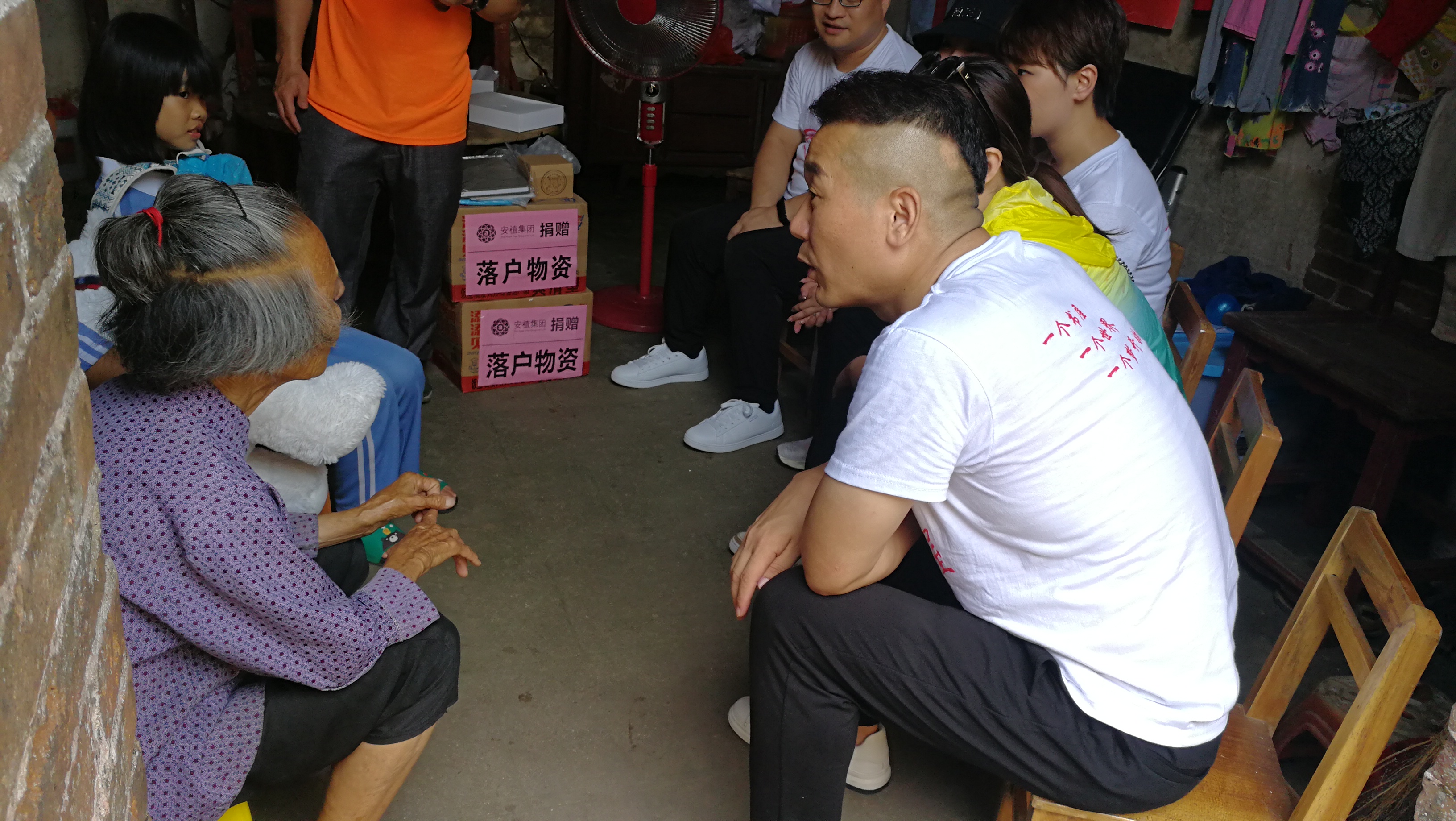 经过近3小时车程,顺利来到扶楼小学,安植集团的志愿者们摆放好物资后,便马不停蹄的就前往六户贫困家庭慰问探访。落户的家庭多数为留守儿童或困境儿童。志愿者们为他们送去了300元的慰问金,学习机、书包等慰问物资。