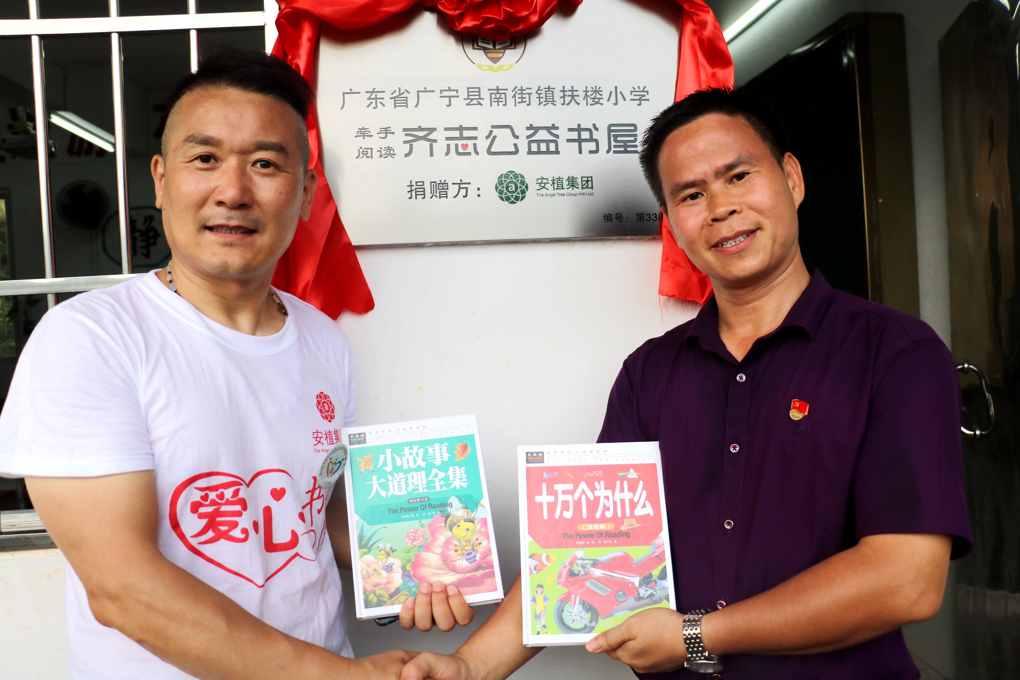 安植集团自2014年起,积极参与助学活动,本次助学已是第六次携手齐志社会工作服务中心,资助第33间公益书屋,为扶楼小学改善阅读条件, 在广宁县民政局谢学明副局长、广宁县中心小学欧杰文校长、广宁县扶楼小学潘光彬校长、安植集团赵荣强总经理的共同见证下,第33间“齐志公益书屋”在广宁扶楼小学正式揭牌。
