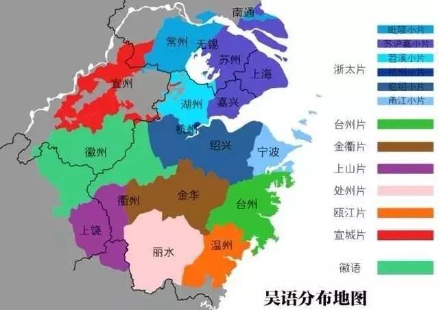 ▲吴语区只占江苏一部分