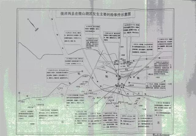 1959年,山东省在微山湖上建成二级坝,导致水面降低,出现了大量因干涸形成的湖田。微山县(山东)和沛县(江苏)各自组织抢种,发生了械斗。此次冲突由两省各让一步得到解决,但随后的20多年,冲突一直没有断过,双方村民甚至私藏枪支对打,出现死伤。