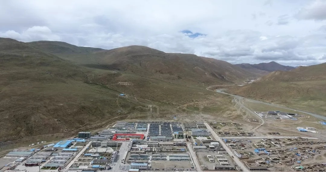 俯视下的仲巴县城背靠高山。