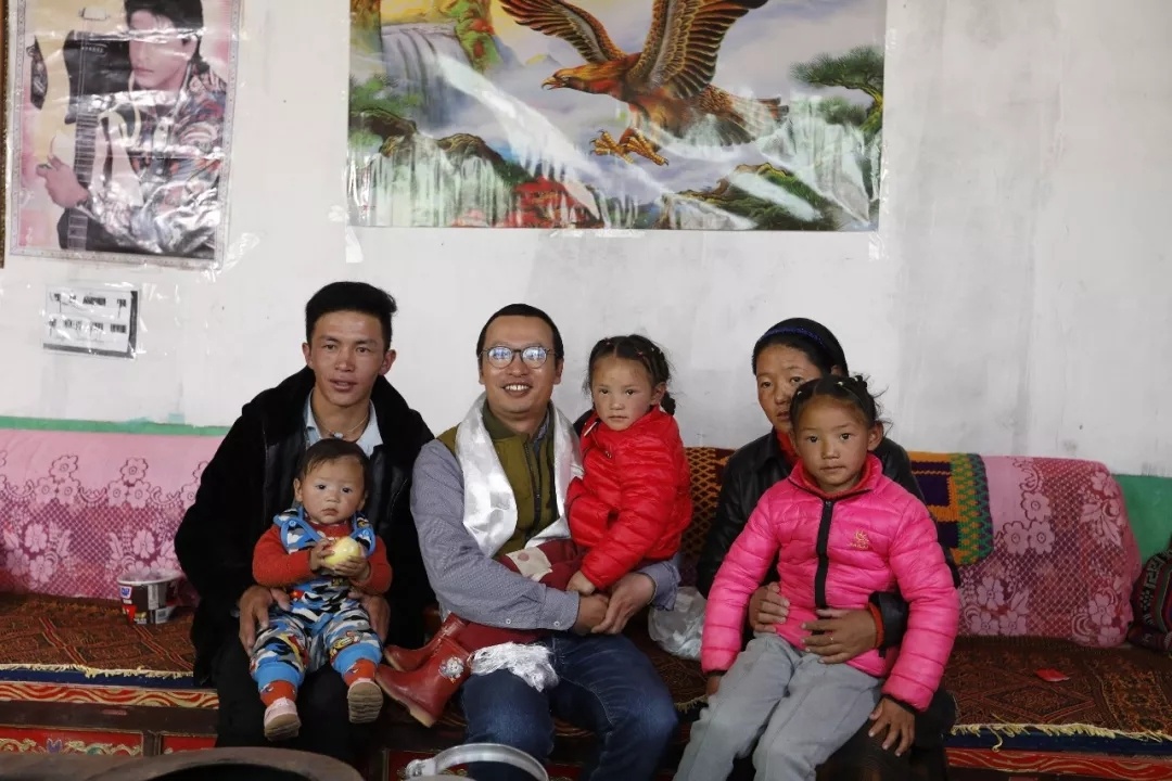 付帅医生与益西措姆一家,益西措姆是付帅帮扶仲巴后做的第一例剖宫产手术的产妇。