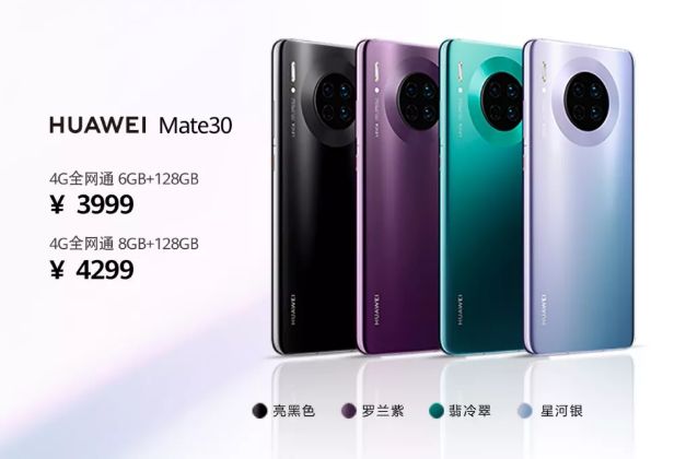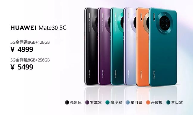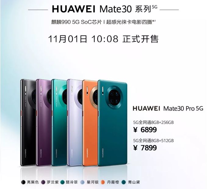 1、Mate30国行版价格3999元起,5G版11月1日开售
