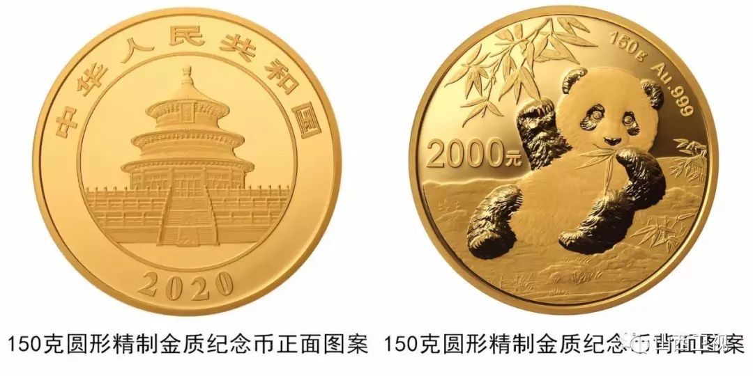(八)150克圆形金质纪念币为精制币,含纯金150克,直径60毫米,面额2000元,成色99.9%,最大发行量10000枚。