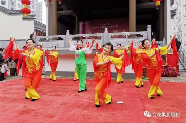据合晚巢湖晨刊消息 1月5日下午,巢湖大嫂子民歌队全体队员,受庐江县庐城镇绣溪黄梅戏艺术团盛邀,前来参加庐江岗湾老街第四届民俗文化旅游节,与当地群众共同欢庆文化节。