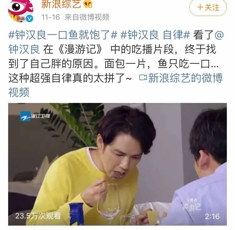 天哪,钟汉良好狠一男的!这就是我和男神的区别,人家一条鱼吃一口,我几口吃一条。优秀的人通常很自律,难怪他能红这么多年。