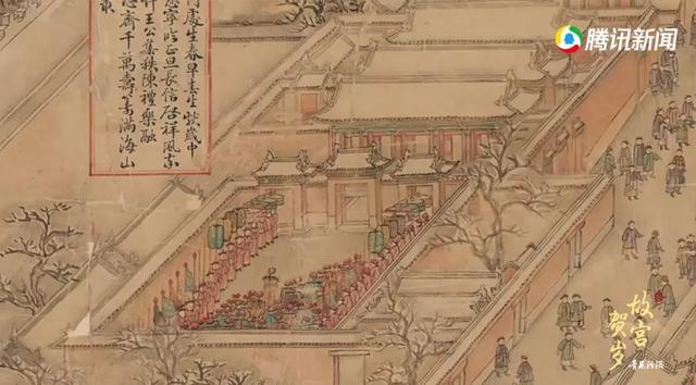 元旦朝贺结束后的这段时间,是乾隆的家庭见礼时刻。乾隆从重华宫移步而出,摆驾乾清宫。因着清代男女大防的传统,本次家庭见礼先由容妃、愉妃等妃嫔行六肃三跪三拜礼,再由皇子皇孙曾孙在殿外行三跪九叩礼。