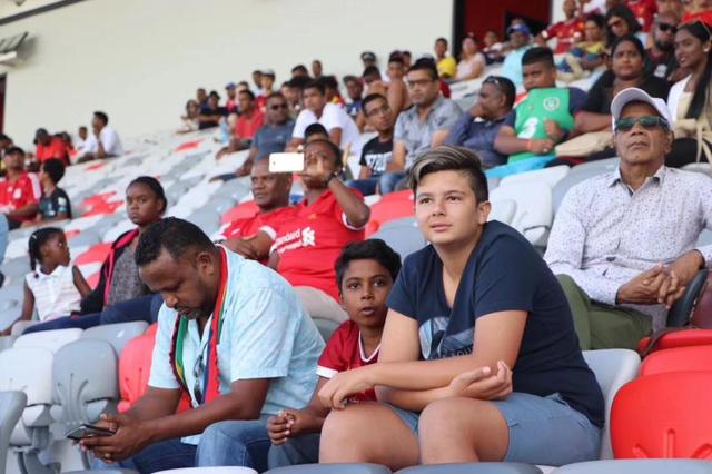 这个占地面积25万平方米的综合体育中心去年7月落成,中方参与援建,此前高质量举办了印度洋岛国运动会赛事。这场小孩子之间的比赛,吸引到500多人观赛,一半在毛里求斯工作、生活的华人,另一半是利物浦毛里求斯青训学院小球员的家长和铁杆球迷。