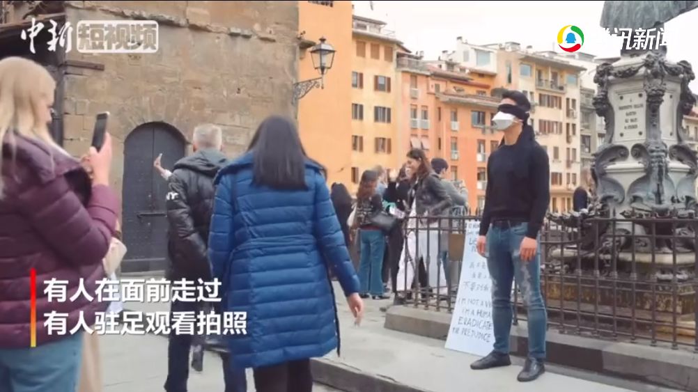 当地时间2月2日,一个生活在佛罗伦萨的中国男孩儿走上街头,面对来来往往的意大利人和海外游客,戴上口罩,蒙住眼睛,沉默的站在那里,做出对没有素质的歧视行为最有力的反击。