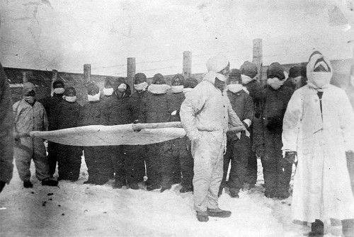 眼看去送葬哭丧的人感染鼠疫死了,谁还敢去?再说,天寒地冻,哈尔滨的冻土层足有 1 米多厚,一镢头下去就一个白印,跟砸在石头上差不多,你总不能用打眼放炮的方法来挖墓穴吧!
