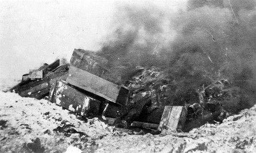 集中焚烧的死者棺木
